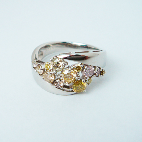 できるだけフラットに近づけた形ながら、カラーダイアモンドによるデコラティブアートを心掛けたデザインです。